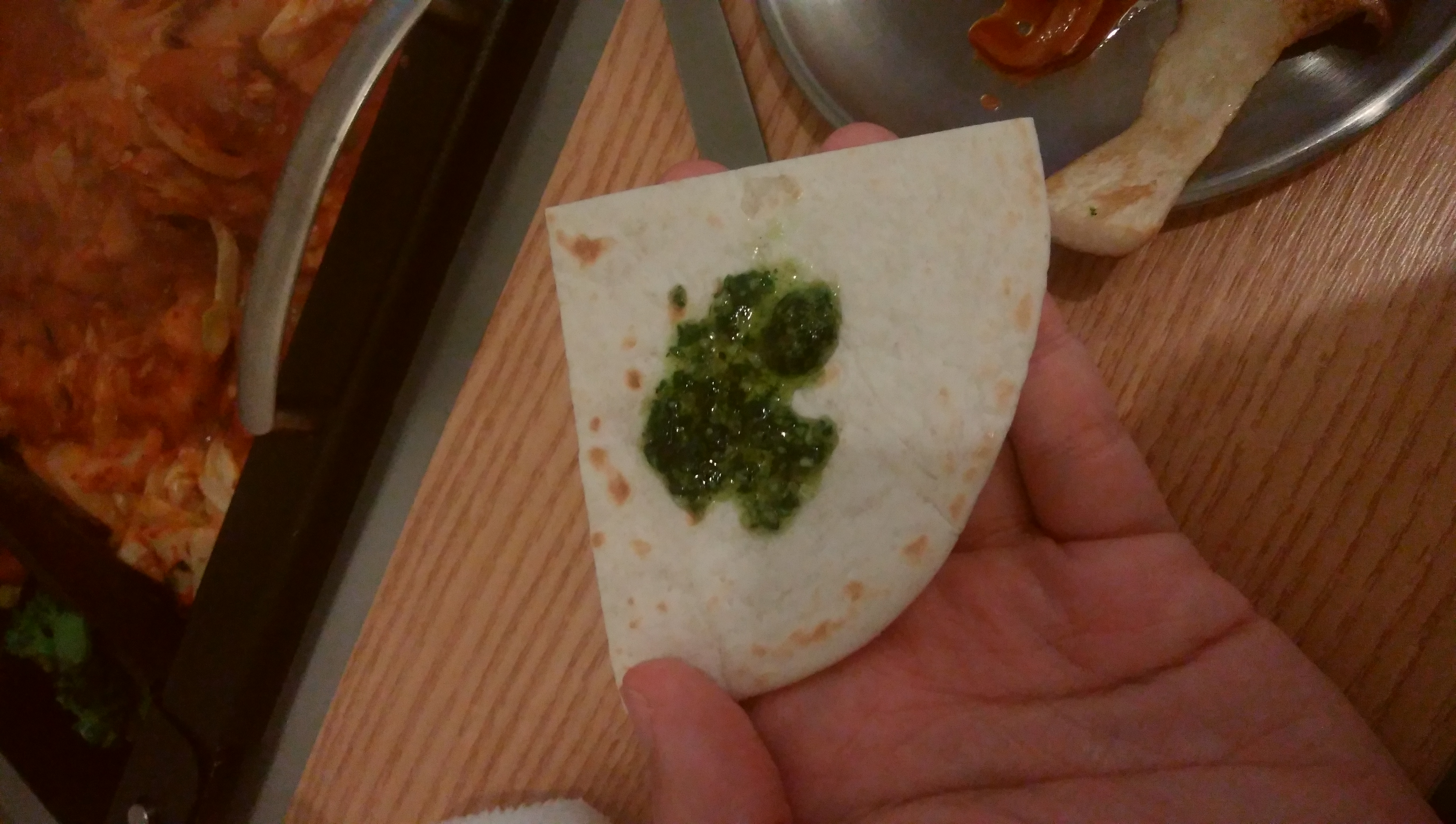 まず手始めにチーズダッカルビのサイドメニュー的扱いでトルティーヤと怪しげなタレが運ばれてきました。