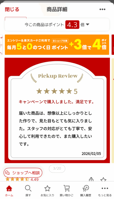 - レビュー評価や購入者の声