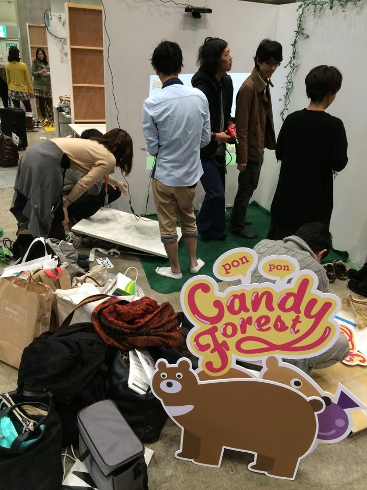今回僕たちが出展した作品は、『 pon!pon!CandyForest  』 という お菓子が大好きな動物たちの森を舞台にした、ユーザー参加型の体感型インラタクティブコンテンツです。
